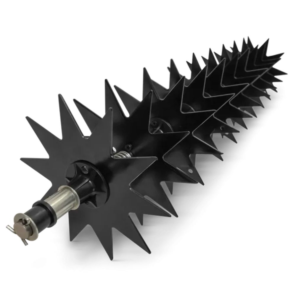 A dethatcher attachment that will remove moss for a healthier lawn. A platform is required to be able to use this attachment (sold separately).