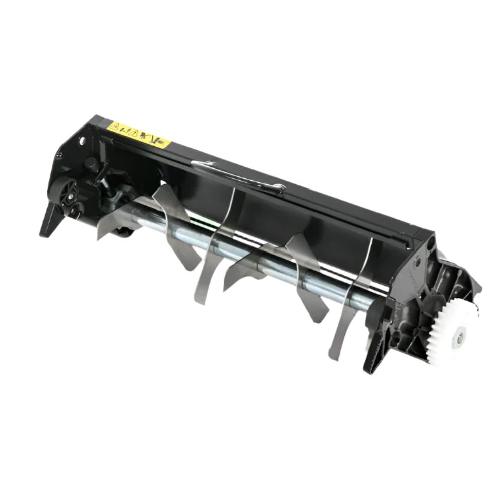 This model is compatible with all RC43 cartridges in the Allett range, including the aerator, lawn brush, dethatcher, scarifier, verticutter, and 10-bladed cylinder. Thanks to the Rapid Change system, you can switch between cartridges quickly and easily without removing belts or side covers – simply remove one screw on each side of the cylinder.