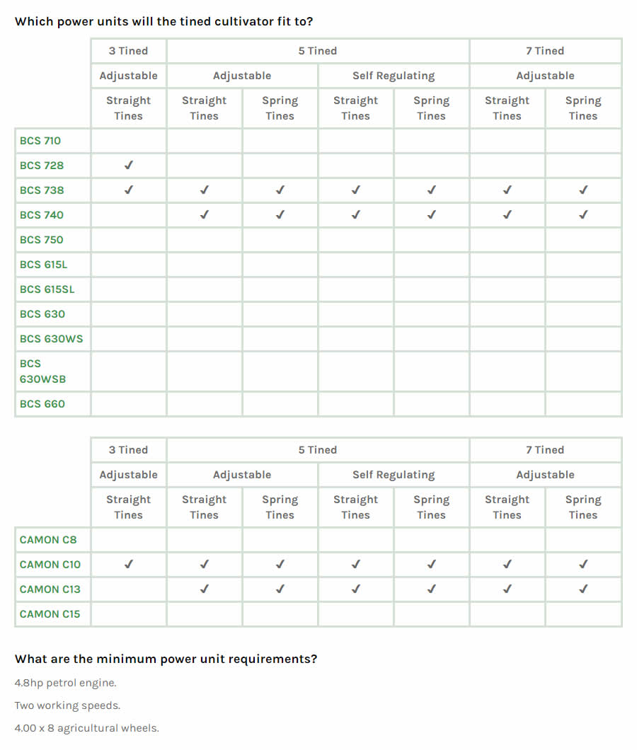 If you are using this attachment with a power unit that has the Implement Quick Coupling fitted, a blank coupler will be needed. With the different configurations available, certain models of this cultivator will fit the BCS 728, 738 and 740, as well as the CAMON C10 and C13 power units.