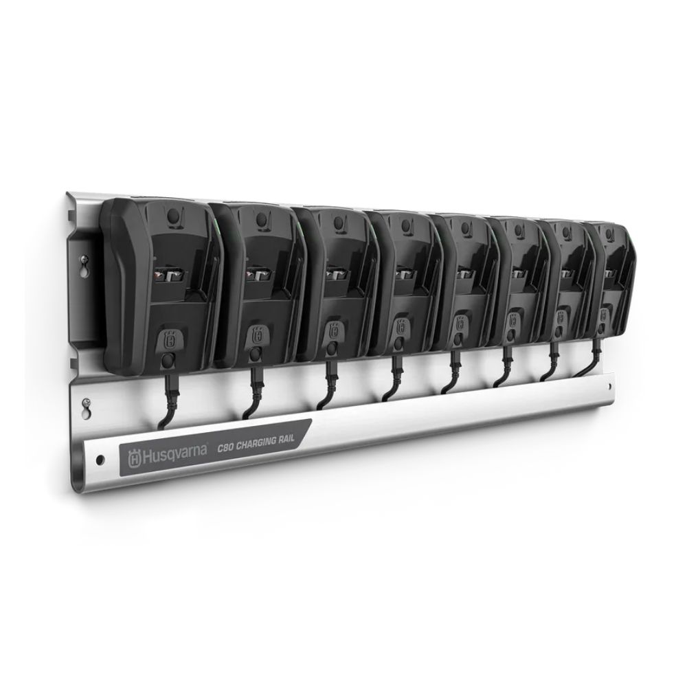 The Husqvarna 40-C80 Charging Station offers silent, efficient charging for eight BLi-X 36V batteries. With flexible mounting options and a single-socket setup, it’s perfect for keeping professional tools ready and organised.