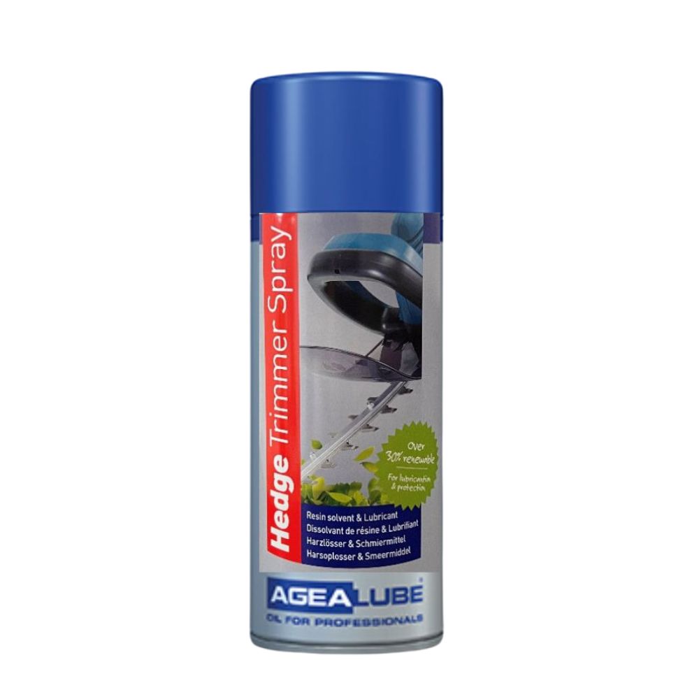 A 400 ml can of biodegradable spray for hedge trimmer blades; it lubricates blades, removes resin deposits, and protects against corrosion for long-lasting performance.