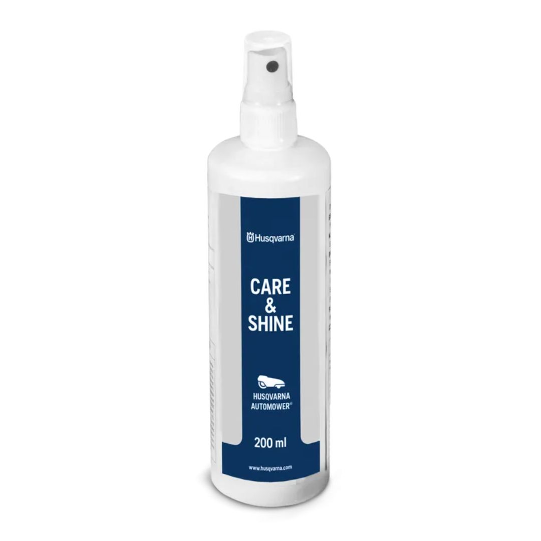 Husqvarna Automower® Care and Shine Spray keeps your automower clean and protected, removing dirt and debris, ensuring optimal performance, and extending its lifespan.