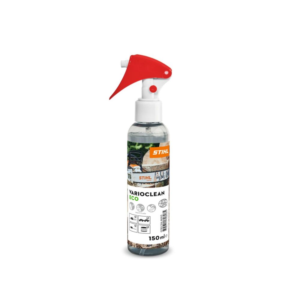 STIHL VarioClean is a biodegradable, water-based cleaner for removing resin, oil, and dirt from chainsaws, filters, and housings. Safe for HD2, wire, and PA filters.