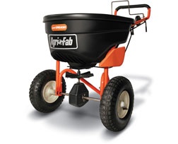The Agri-Fab 45-0462 push spreader is equipped with a large 56kg hopper, which is fitted with extra large pneumatic tyres for easy manoeuvrability.