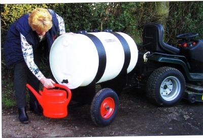 The GWC is a small but very useful towable water tank for watering trees, shrubs, plants and carrying water to small animals. Features a 180 litre/40 gallon capacity.