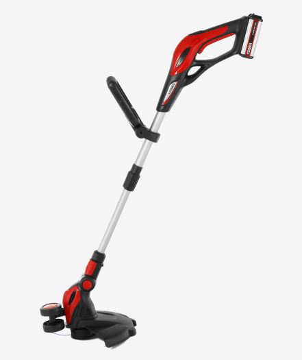 This is a high performance cordless grass trimmer from Cobra, coming with a 24v Lithium-ion battery and charger, providing speedy cutting with a 30 cm width and a 90 degree tilting cutter head.