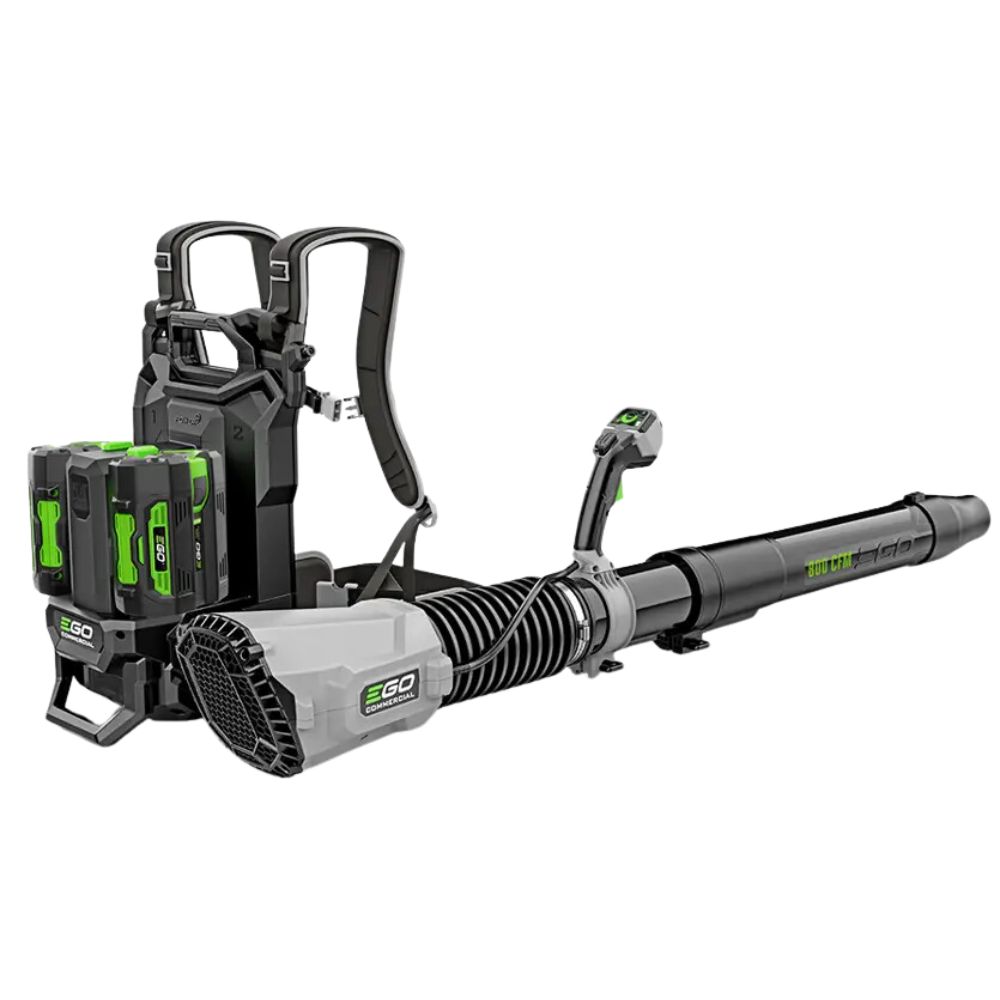 A cordless backpack blower with a comfortable harness, excellent blowing force, an axial blower type and a low vibrational and efficient brushless motor.