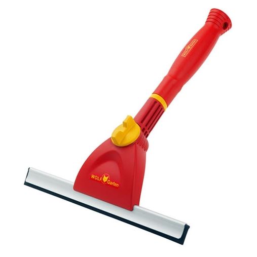 This window wiper and handle are part of Wolf-Garten’s Multi-Change range, allowing you to swap out the handle for a telescopic one if desired. The broad wiper is 35 cm wide and adjusts to 110 degrees.