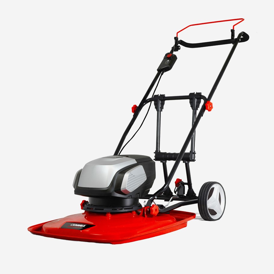 An efficient cordless hover mower with powerful brushless motor, a cutting heights system, a steel blade cutter system that is also ideal for use on uneven ground or on sloping terrains up to 45 degrees.