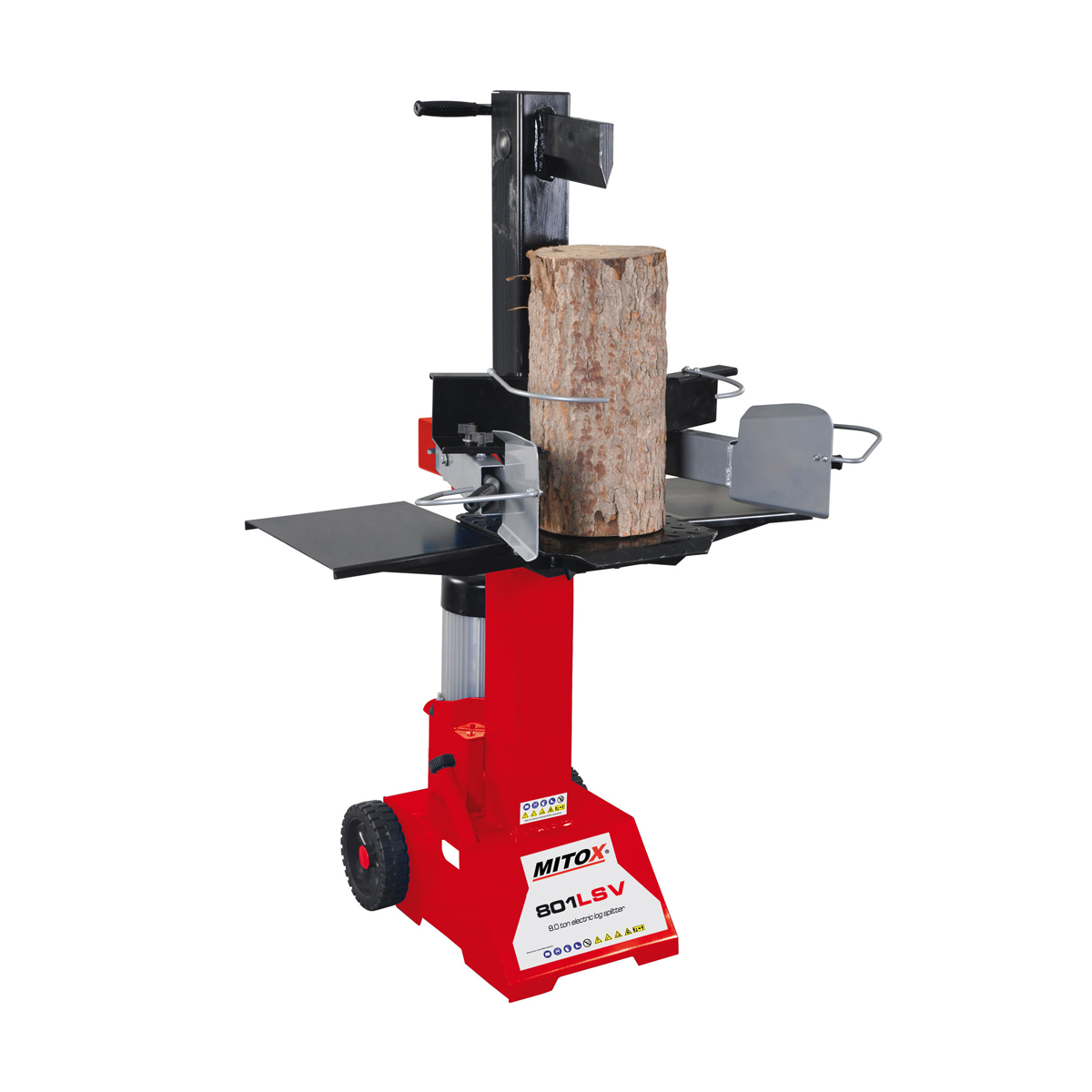 Mitox’s most powerful wood splitter, the 801 LSV boasts an 8-tonne splitting force! Able to cut logs up to 55 cm long and 30 cm wide, this electric splitter features a reinforced push block, Quick Split function, A1 safety features, and more.