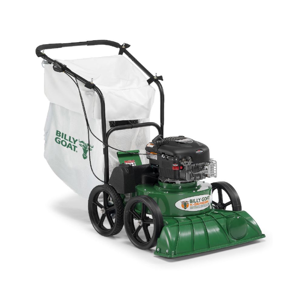 A lawn and litter vacuum with an integrated chipper for branches; it is self-propelled and powered by a B&S engine, taking the chore and fatigue out of hilly turf clean-up.