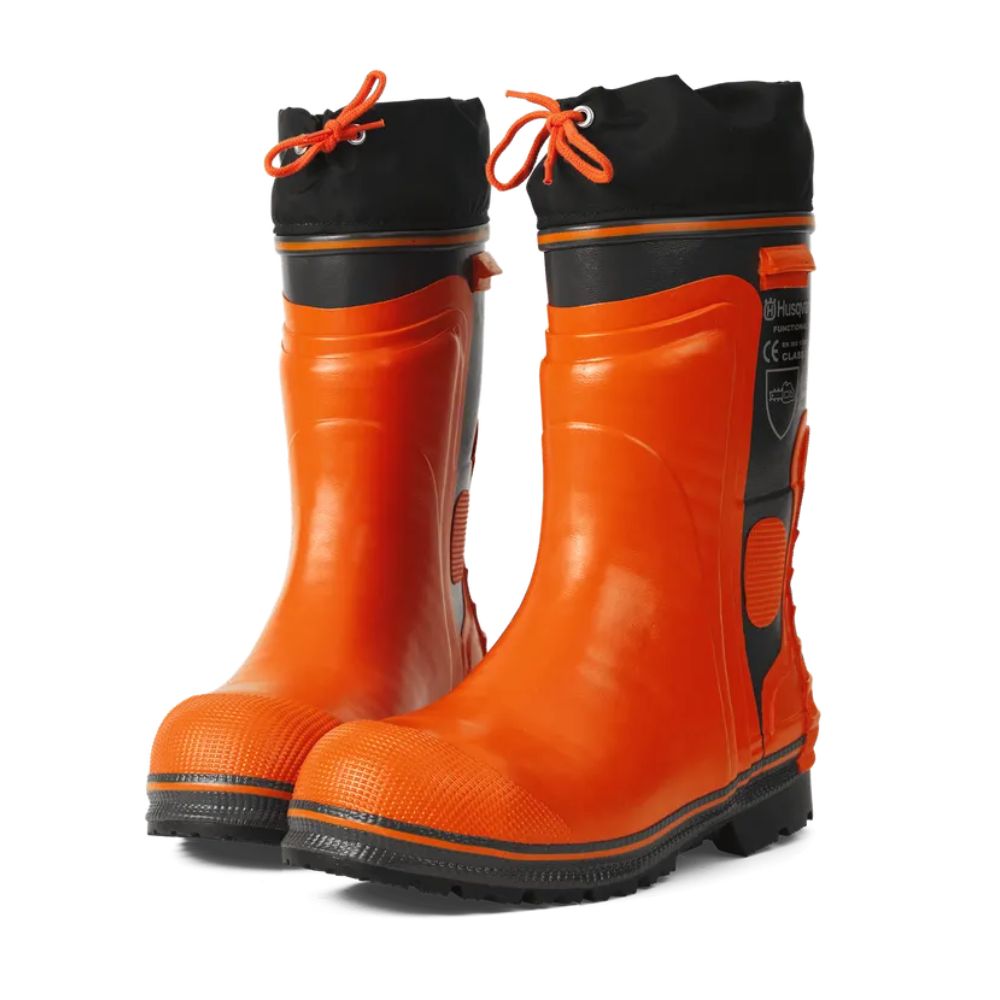 Durable rubber chainsaw boots with Class 2 cut protection for speeds up to 24 m/s. Featuring steel toe caps, self-cleaning soles, and a breathable cotton lining for comfort. Ideal for forestry professionals. If out of stock, ordered upon purchase.
