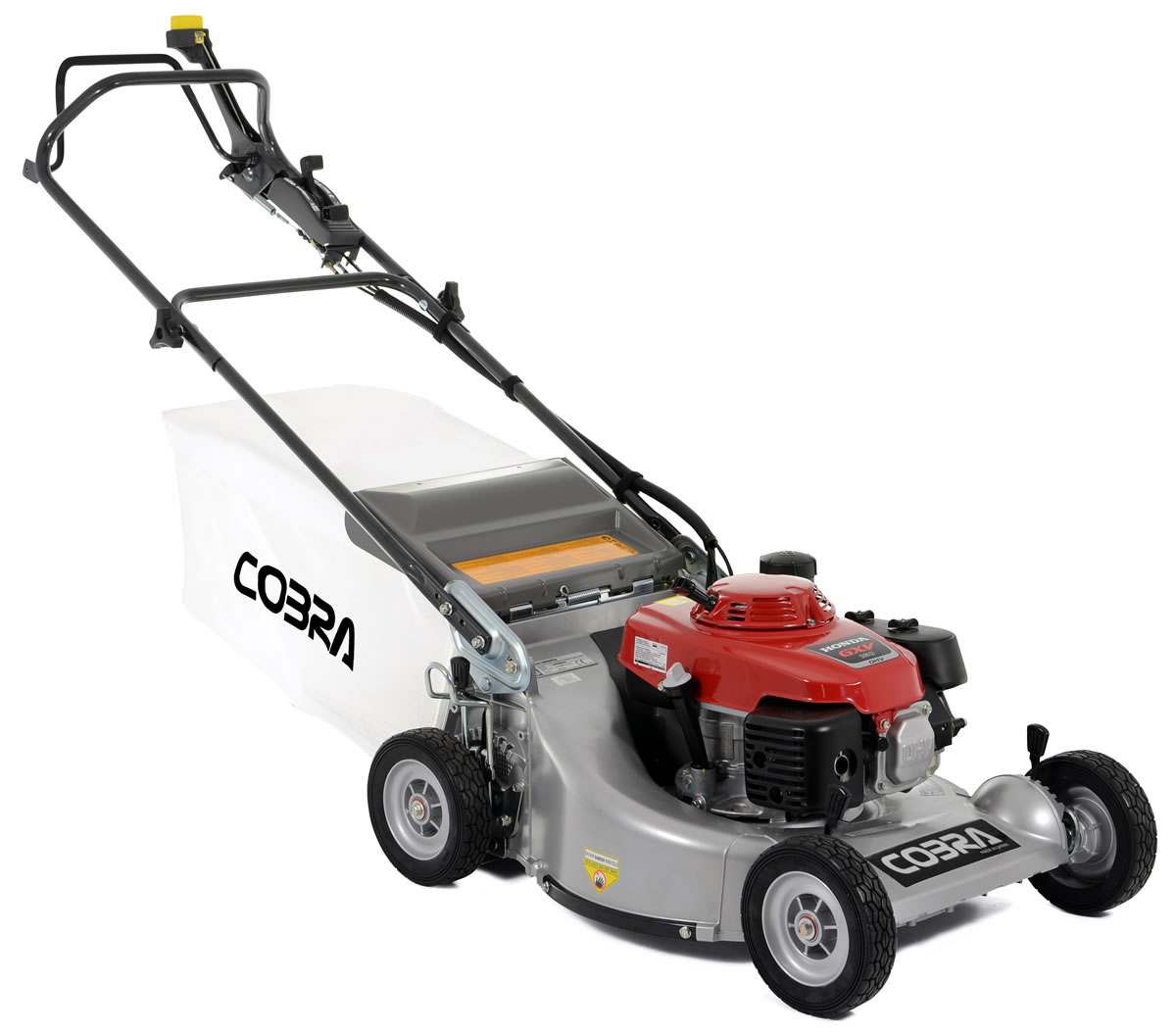 The Cobra M53SPH is powered by a two speed Honda GXV160 engine. Features a 21 inch cutter deck, 7 height adjustments, and includes la arge 75 litre grass collector.