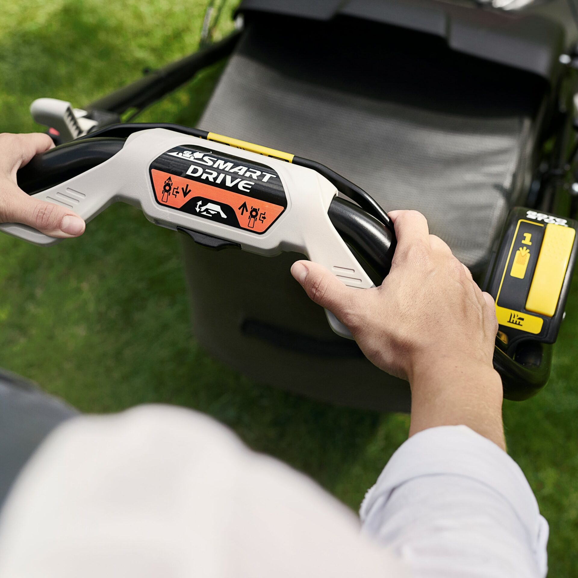 Having variable speed drive means that the lawnmower will propel itself forward at any 1 of the 5 preset speeds, meaning no pushing is required; this is particularly helpful to those who struggle with the push aspect or those with sloped gardens. The Smart Drive utilises a new paddle shaped lever situated on the handlebar to control the lawnmowers speed; its ergonomic design means that either the palm or thumb of either hand can control the speed – no more stretching to push or pull a lever.