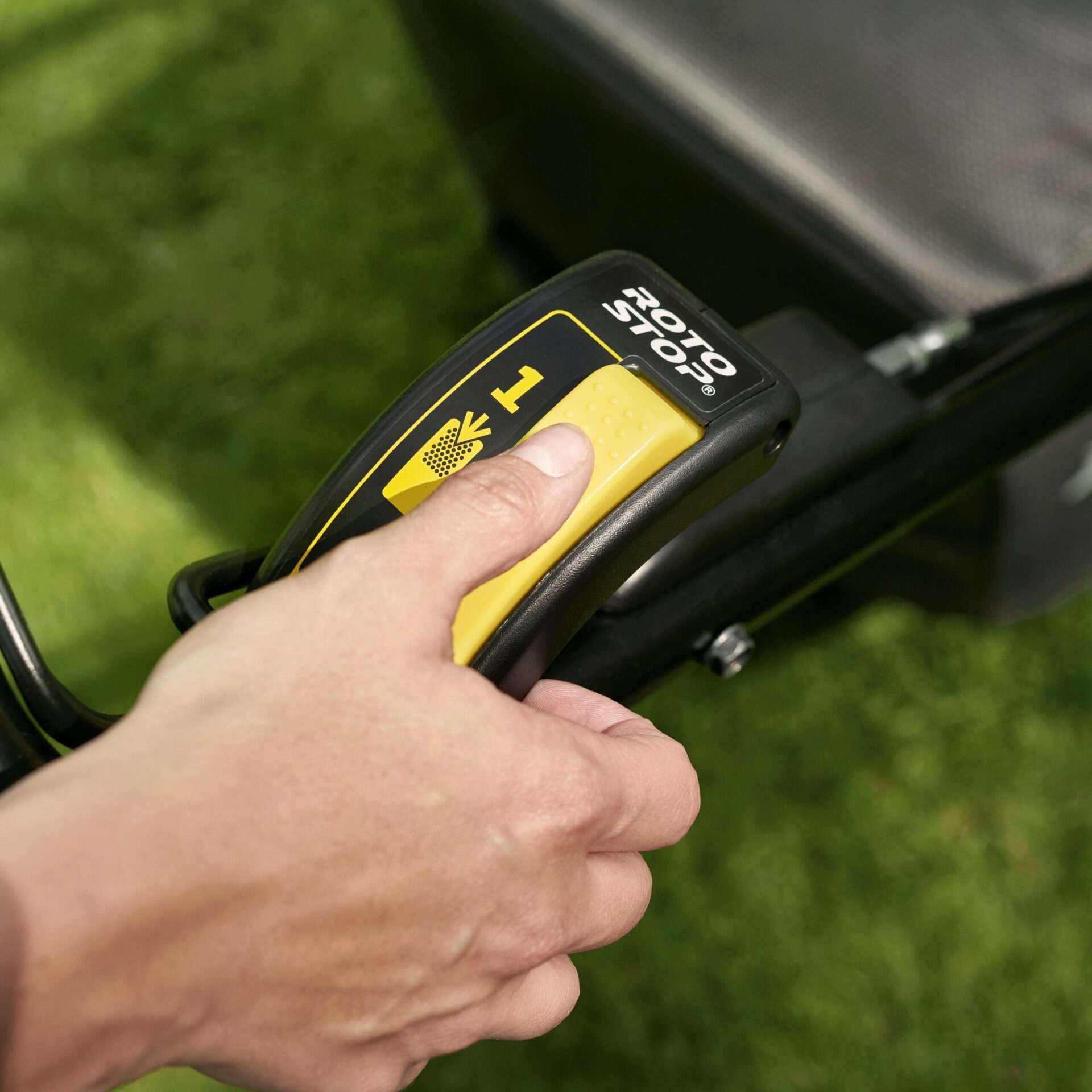 The Roto-stop® blade brake stops the blades from turning but keeps the engine running; it is a great convenience and time-saving feature meaning you don’t have to restart the lawnmower when you need pause, to empty the grass bag, move obstacles out of the way, or transport the lawnmower over other surfaces.