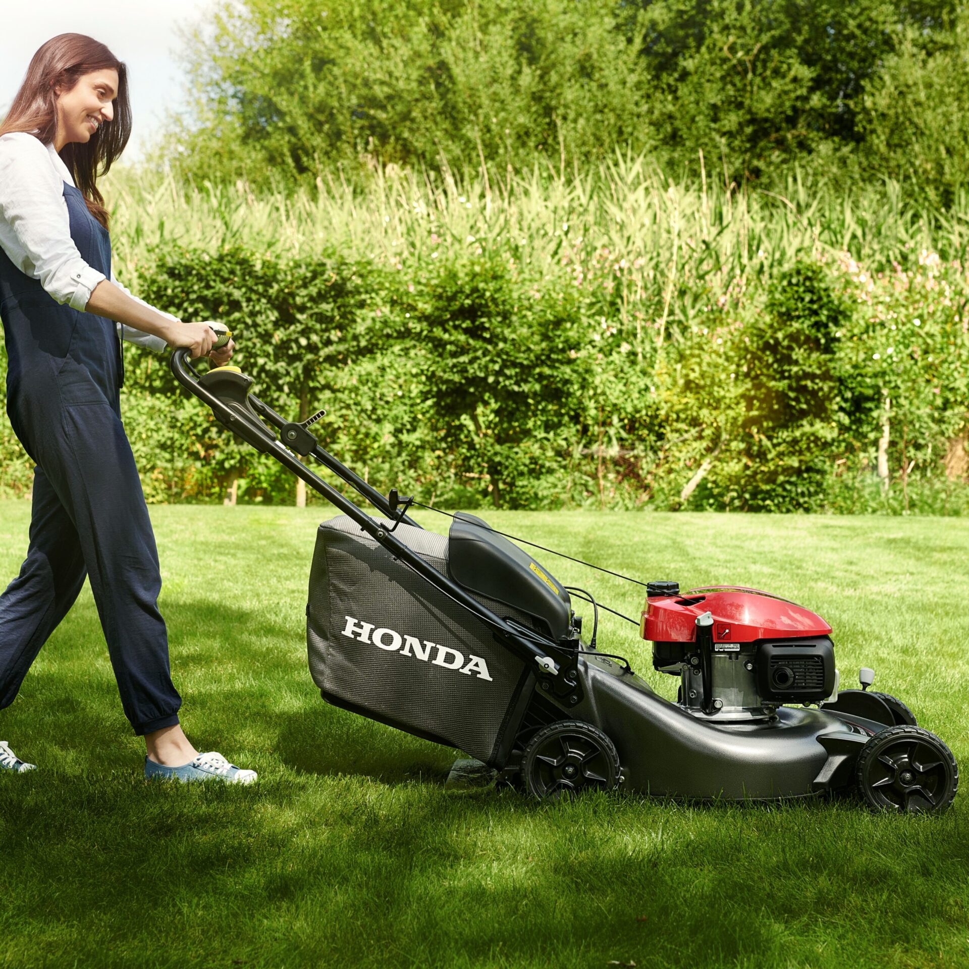 The new HRN 536 VY from Honda is a petrol lawnmower designed for homeowners who want premium features and value for money. It has a 21 inch cutter deck and can either collect cuttings in the 70 Litre grass bag, or with the Versamow mulch plug inserted can very finely shred clippings and leave them almost-invisibly on the ground to fertilise the soil – mulch; both methods are done more efficiently thanks to the improved cutter house design.