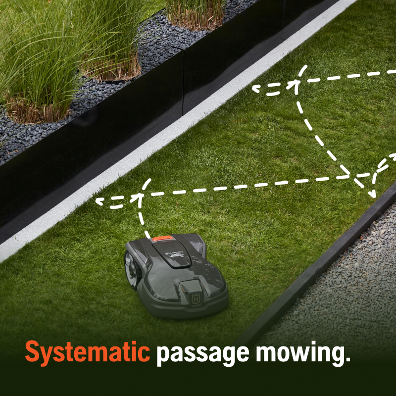 The 315 Mark II Automower has the ability to switch mowing patterns based on where it is mowing; so for e,g, the mower can be set to automatically switch from random mode to systematic mode based on narrow passages which means that the user can experience consistent cutting performance thanks to the systematic passage mowing.