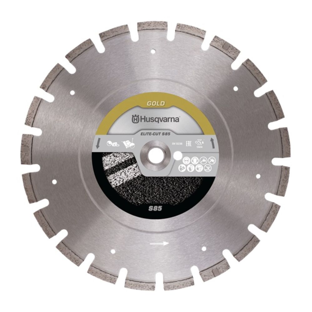 The Elite-Cut S85 excels in slicing through Asphalt and other tough materials, offering high-speed cutting thanks to its evenly distributed diamonds.