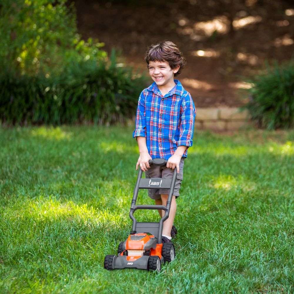 My two year old grandson just loves this mower – he follows his dad (who’s using a real mower) around the garden having a great time.