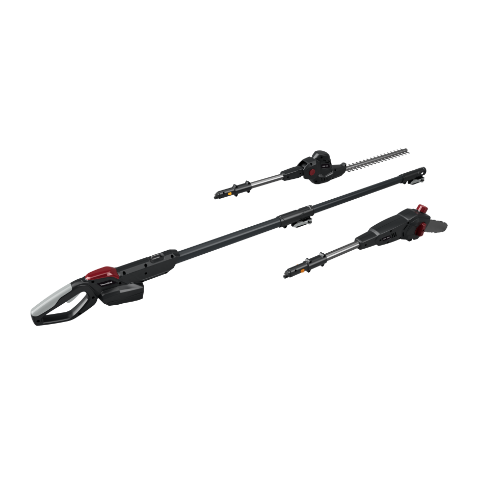Thanks to the supplied 2 Ah 20V Lithium-ion battery, you can use this machine wherever you need to around your garden. The battery powers the 150W brushless electric motor, ensuring the pole pruner can can run for around 20 minutes, and the hedge trimmer for 70 minutes. As a cordless machine, you can expect lower noise, lower vibrations and easy operation than petrol alternatives – without smelly fumes or power cables to think about!
