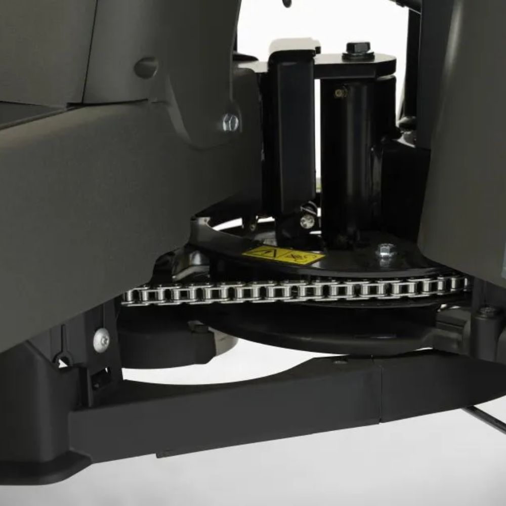 The Park 500 W features a 50:50 articulated steering system that delivers impressive control and flexibility. Its rear-wheel drive allows for easy navigation, even around tight spaces and obstacles like trees and flower beds. The power-assisted hydraulic steering system makes turning effortless, ensuring a smooth ride and precise handling. This innovative chassis design is ideal for complex landscapes, where manoeuvrability and control are essential.
